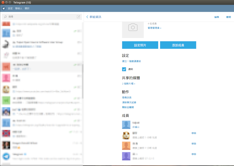 桌面版 Telegram 在您所建立的群組中,點擊<<